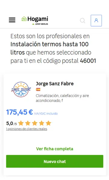 Una vez que localizas el servicio que necesitas en nuestra web, te ofreceremos un listado de los profesionales que realizan ese trabajo en tu código postal. Podrás consultar las valoraciones de clientes reales sobre trabajos realizados por los profesionales y acceder a su ficha completa. En caso de que solicites un trabajo con precio cerrado, también podrás ver los precios que ofrecen los distintos profesionales..