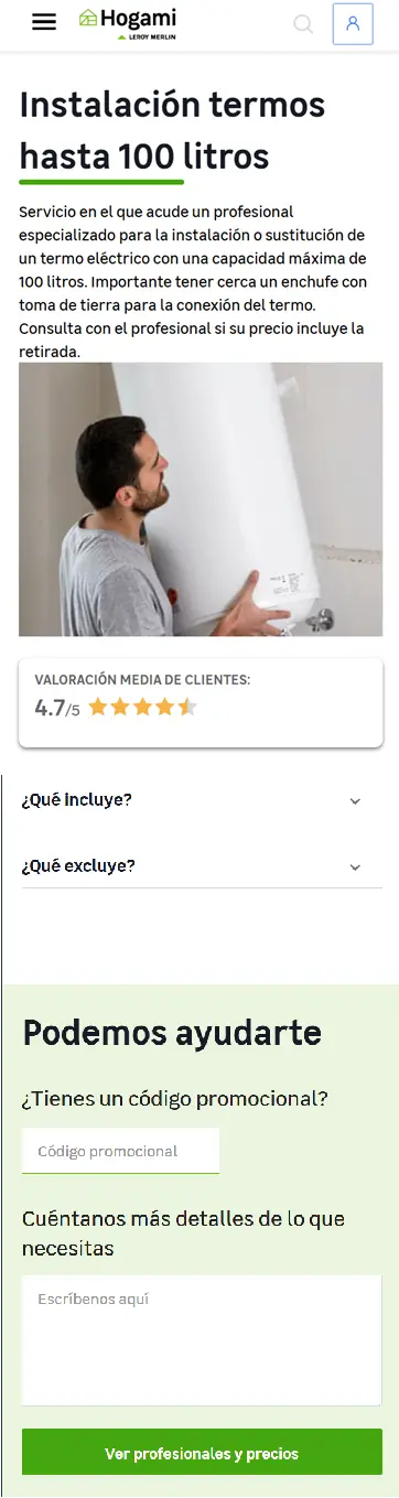 Aunque te lo aconsejamos, no es necesario que los productos sean de tiendas Leroy Merlin. Los profesionales que ofrecen sus servicios en Hogami pueden instalar productos comprados en otras tiendas.