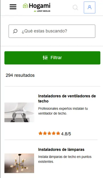 Hogami es una plataforma de servicios de Leroy Merlin, que ofrece un espacio para que clientes y profesionales contacten y acuerden los detalles del trabajo a realizar. Podrás localizar profesionales en tu zona para el servicio que necesites en tu hogar e iniciar la comunicación con ellos de forma sencilla a través del chat integrado en nuestra web.